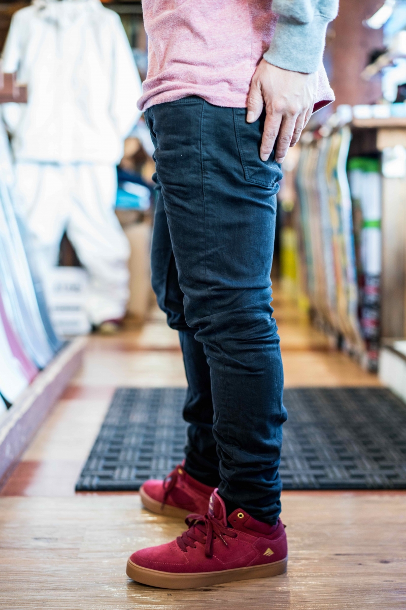 裾にかけて激しくテーパードしている、まだまだ人気なSKINNYシルエット。